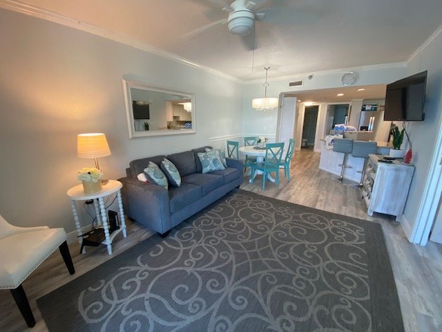 This 1100 sq ft Gulf View 3rd-floor 2 BR/2 BA unit is beautifully decorated. Step onto your private balcony, accessible from both the living area and master bedroom, and soak in the beauty and breezes of the Gulf.