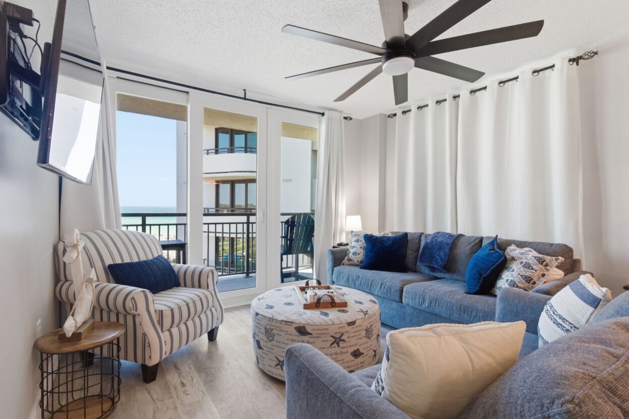 🌴Relax & Unwind in Gulf-View Comfort. Soak up sunshine and Gulf views through floor-to-ceiling patio doors in the living area that invite you onto a spacious private balcony.