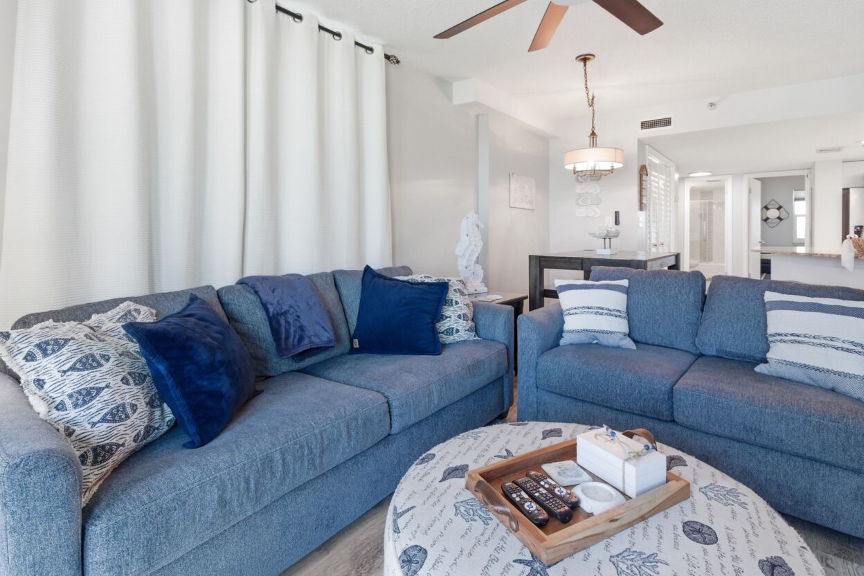 This 1100 sq ft Gulf View 5th-floor 2 BR/2 BA unit is beautifully decorated. Step onto your private balcony, accessible from both the living area and master bedroom, and soak in the beauty and breezes of the Gulf.